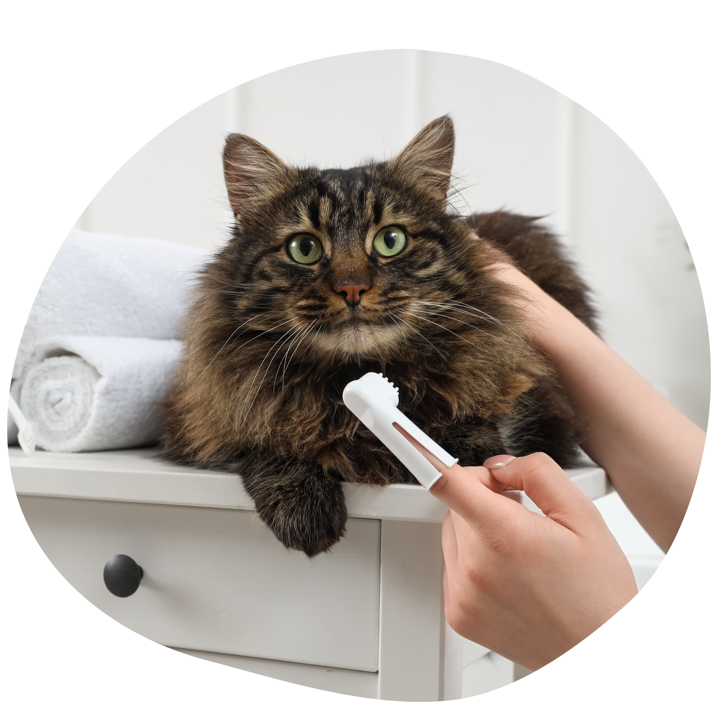 L’idéal est d’habituer progressivement votre chat au contact de la brosse à dents, en commençant avec des mouvements doux à l’aide d’une brosse doigtier avant de passer à une brosse à dent pour chat plus classique. Prenez le temps d’habituer votre animal avec des sessions courtes au début pour que la sensation de l’outil ne soit pas perçue comme désagréable.