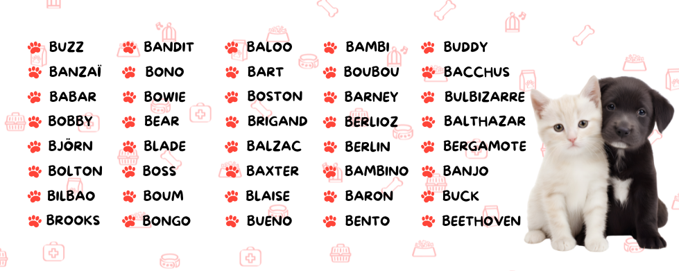 Et si je ne trouve pas mon bonheur dans ces idées de prénoms B pour chiens et chats ?