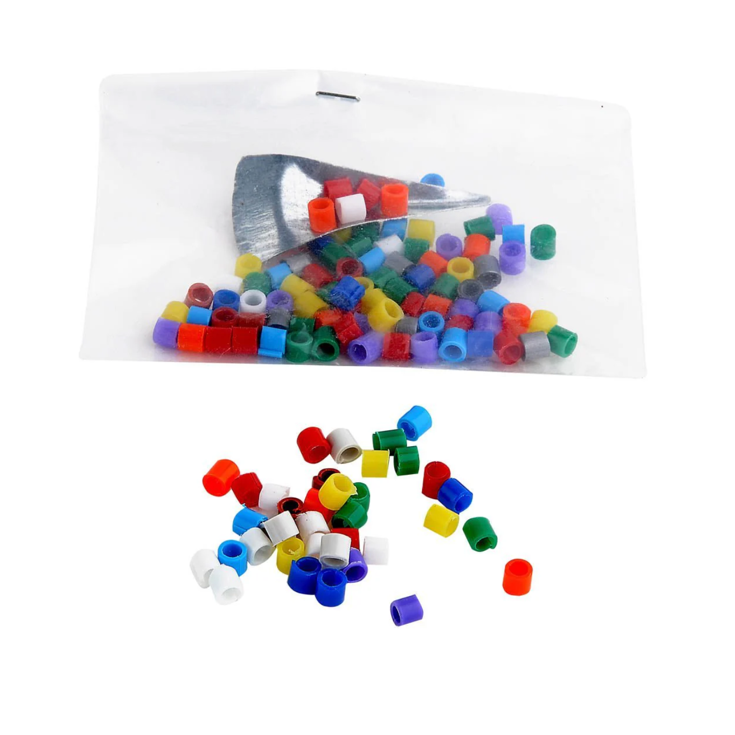 Anneaux en plastique multicolores 2GR. Numéro d’article : 306. Dim : d.3mm. Vendus par paquets de 100.