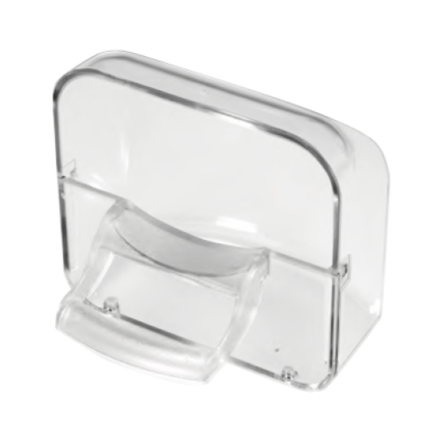 Mangeoire pour cage à oiseaux en plastique transparent avec perchoir.