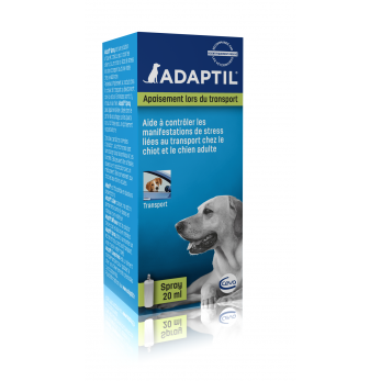 L’efficacité d’ADAPTIL® a été prouvée scientifiquement, son action va apaiser le stress que votre chien peut éprouver durant un voyage.ADAPTIL® Spray voyage contient une reproduction synthétique de la phéromone d’apaisement canine sécrétée par la chienne lors de la naissance des chiots et pendant toute la durée de l’allaitement.