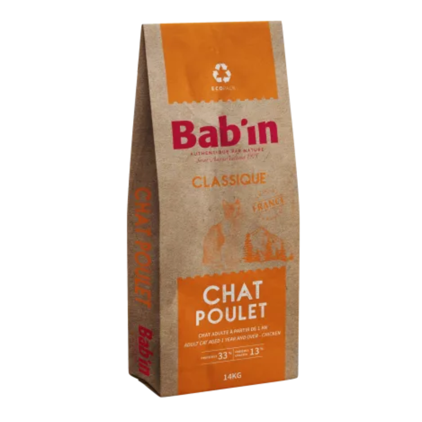 BAB’IN CLASSIQUE CHAT ADULTE, riche en poulet, est un aliment complet et équilibré pour le chat adulte.