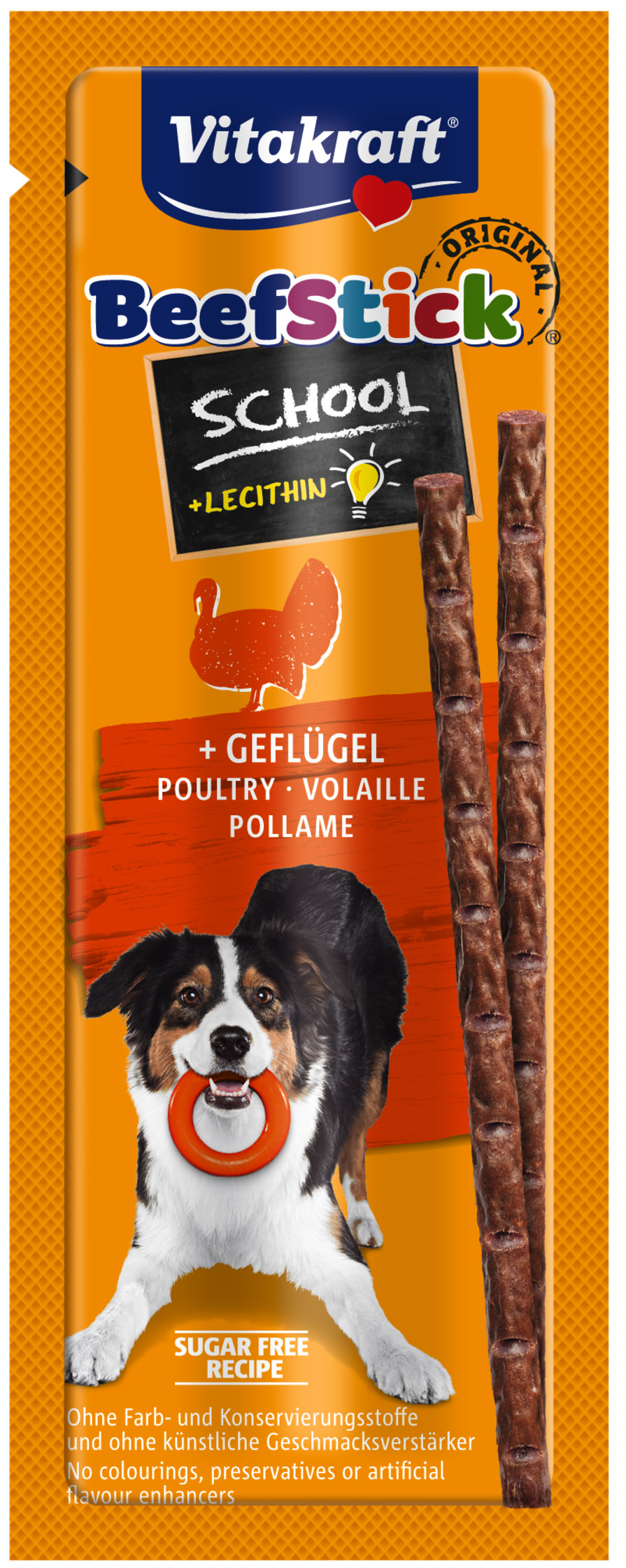 Décourez les Beef Stick School : 10 Sticks à la volaille, riches en viandes et en vitamines. Enrichi en Lécithine, elles sont idéales pour stimuler l’apprentissage et la concentration. Retrouvez toutes les qualités de la marque Beef Stick : la qualité, l’odeur irrésistible, le goût inimitable et la teneur élevée en viande. A donner comme récompense, friandise ou petit encas! Recette sans colorants, sans conservateurs et sans arômes artificiels.