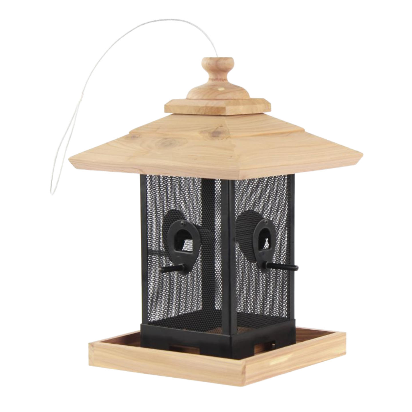 Pratique et design, elle permet aux oiseaux de se nourrir dans efforts grâce aux différents perchoirs.