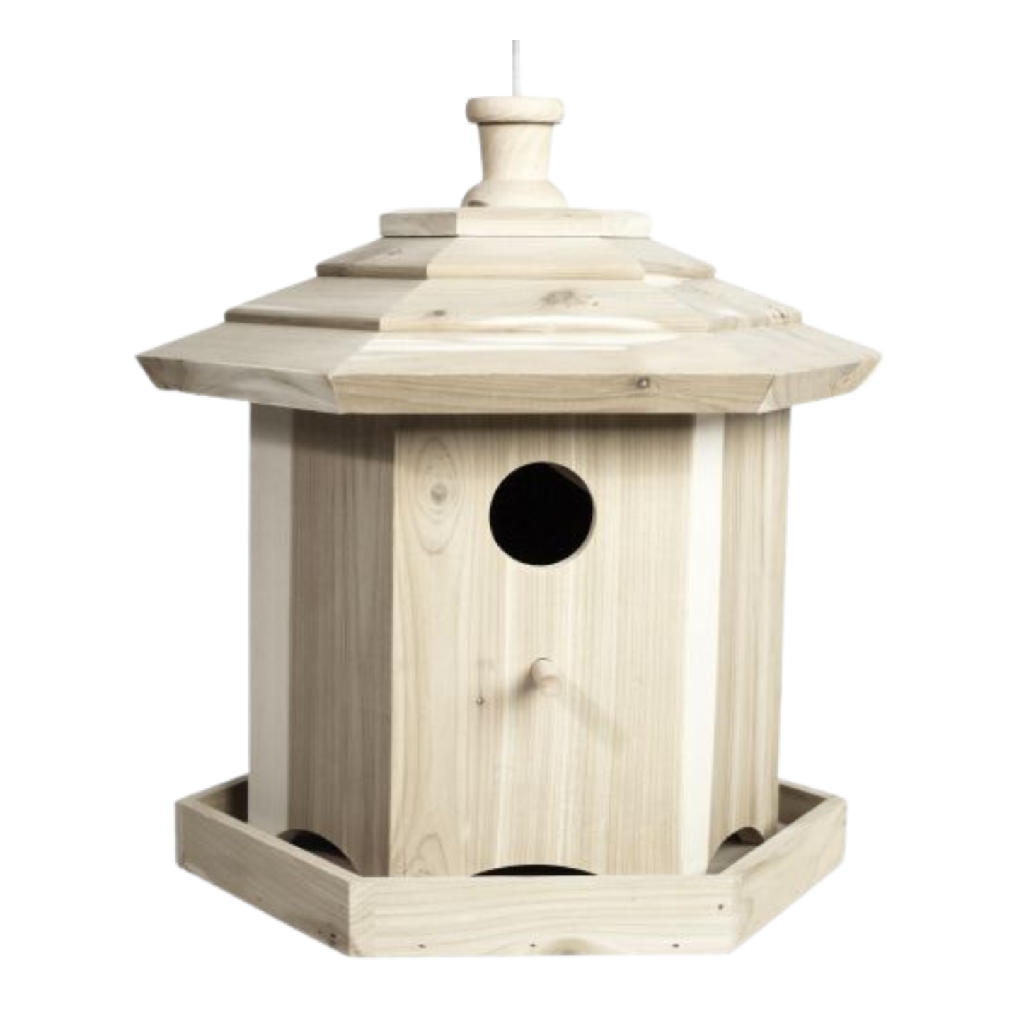 Pratique et design, ce nichoir ravira les oiseaux et ils pourront se rendre à l’intérieur afin de s’y abriter.