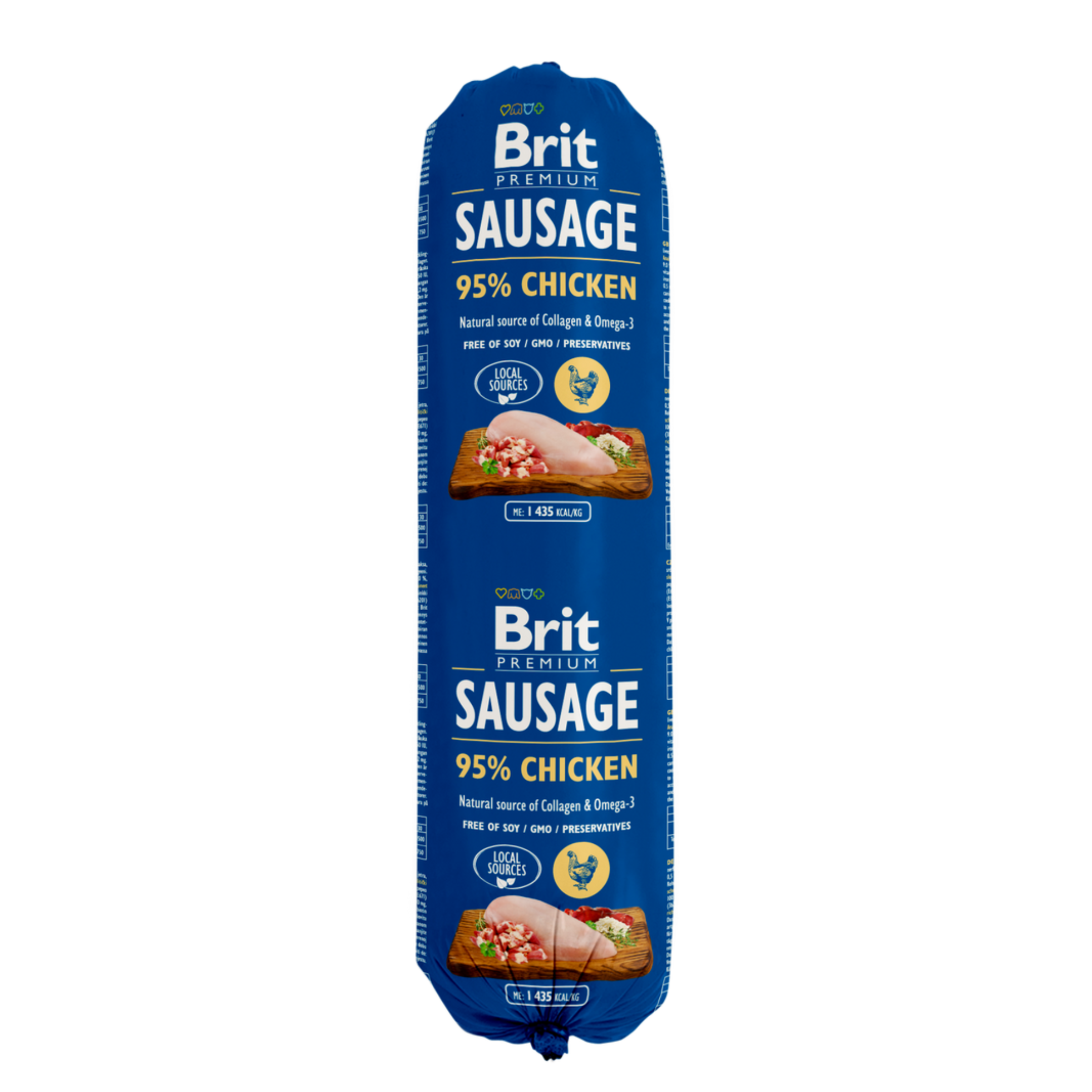 95 % poulet (viande de poulet, foie, cœur, cou, estomac), riz 3,6 %, bouillon 0,9 %, collagène 0,5 %.