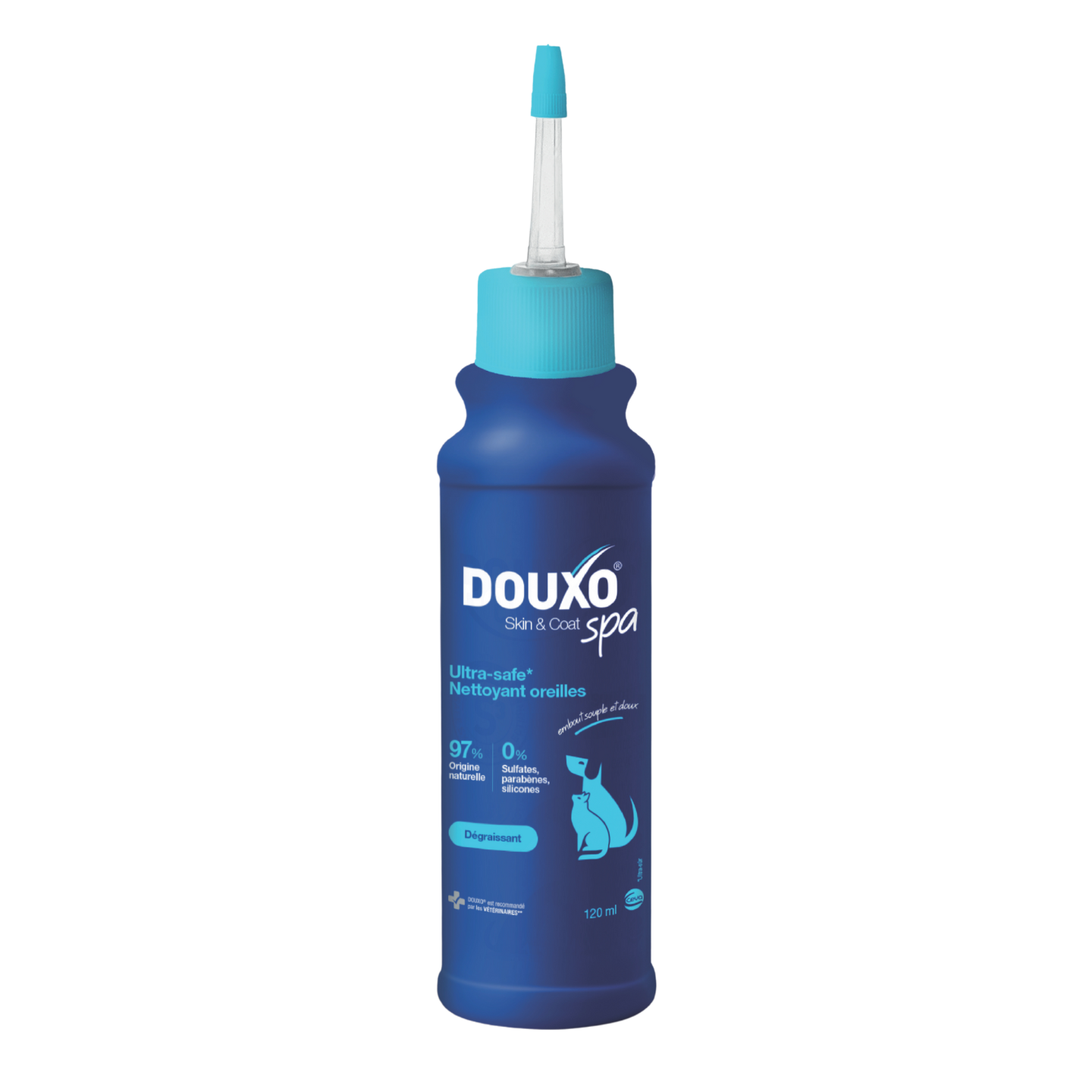 - Masser la base de l’oreille afin de mélanger les éventuels débris au nettoyant.