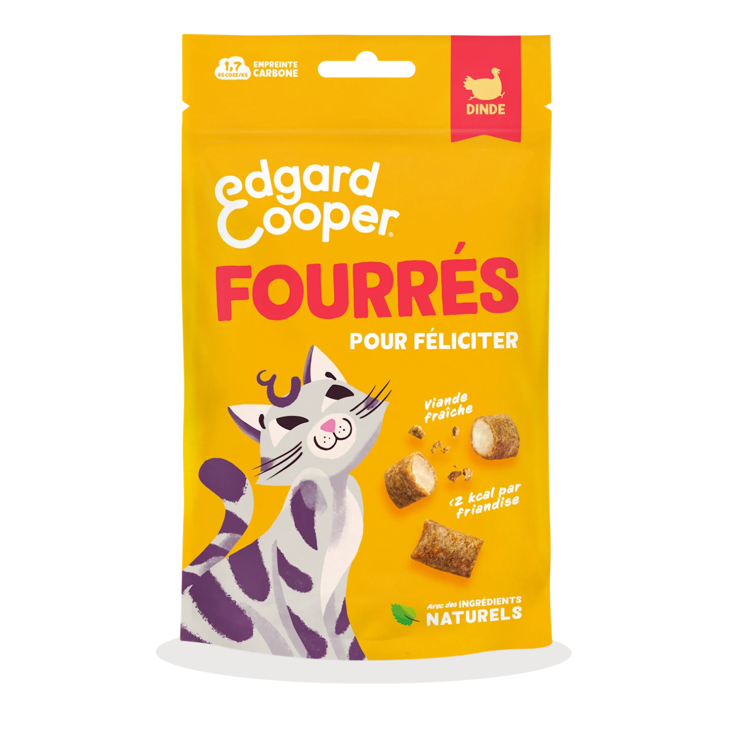 Avec leur enrobage croustillant et leur cœur crémeux, nos Fourrés offriront à votre chat une texture inédite. Préparés à partir de dinde fraîche et d’ingrédients naturels, ils ne contiennent ni céréales ni sucres ajoutés. Et avec moins de 2 kcal par friandise, vous pouvez le récompenser en toute sérénité.