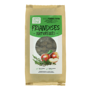 En forme de cœur et d’étoile dans quatre délicieuses saveurs naturelles (pomme, menthe, fraise et banane).