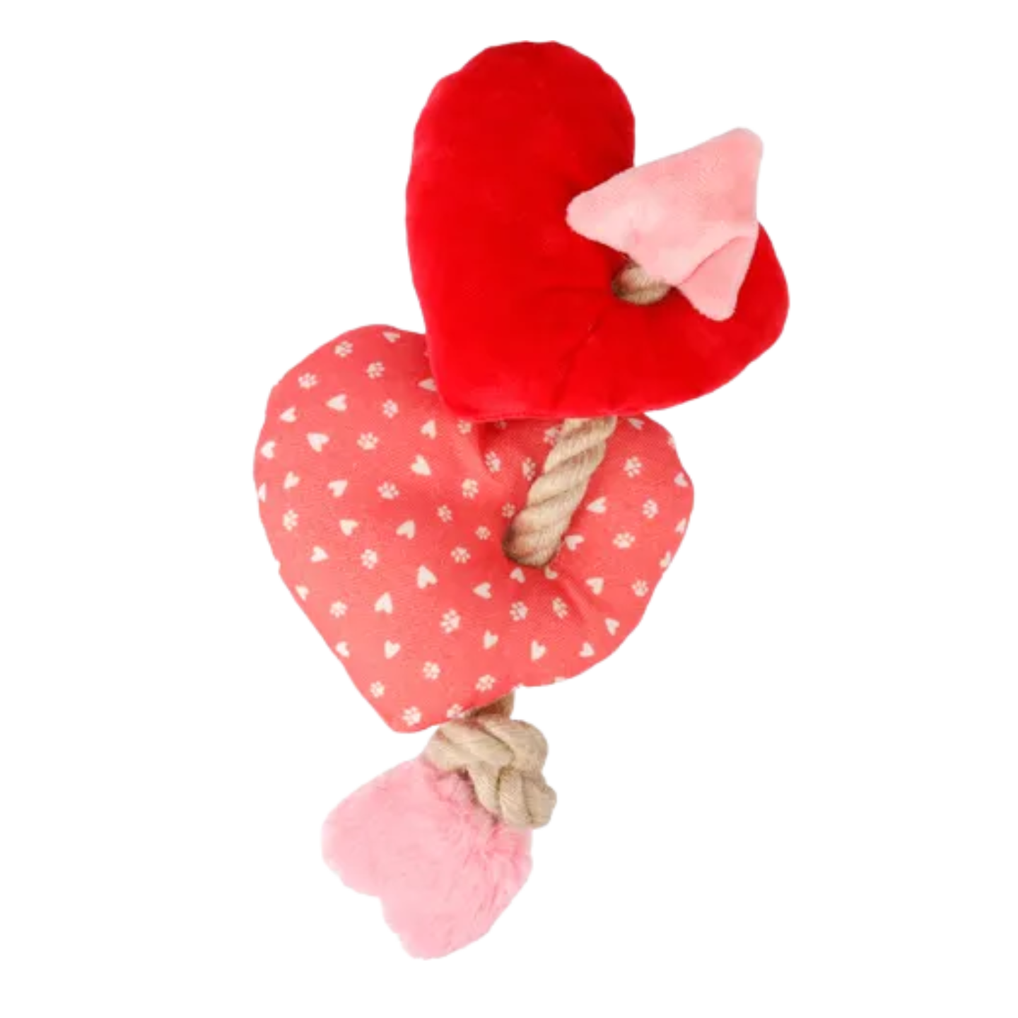 Fabriqué en peluche douce, avec deux petits cœurs qui couinent et crépitent, reliés par une corde solide pour des heures de plaisir.