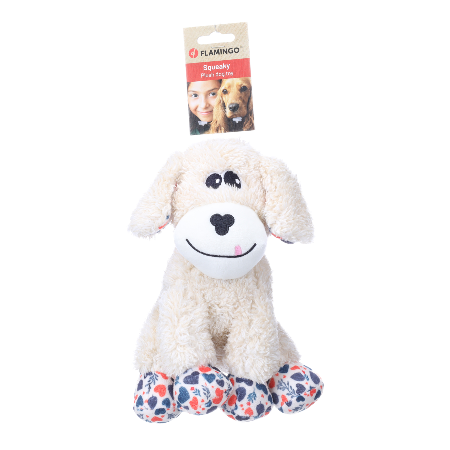 Faite en peluche ultra douce et équipée d’un couineur pour encore plus de plaisir de jeu.