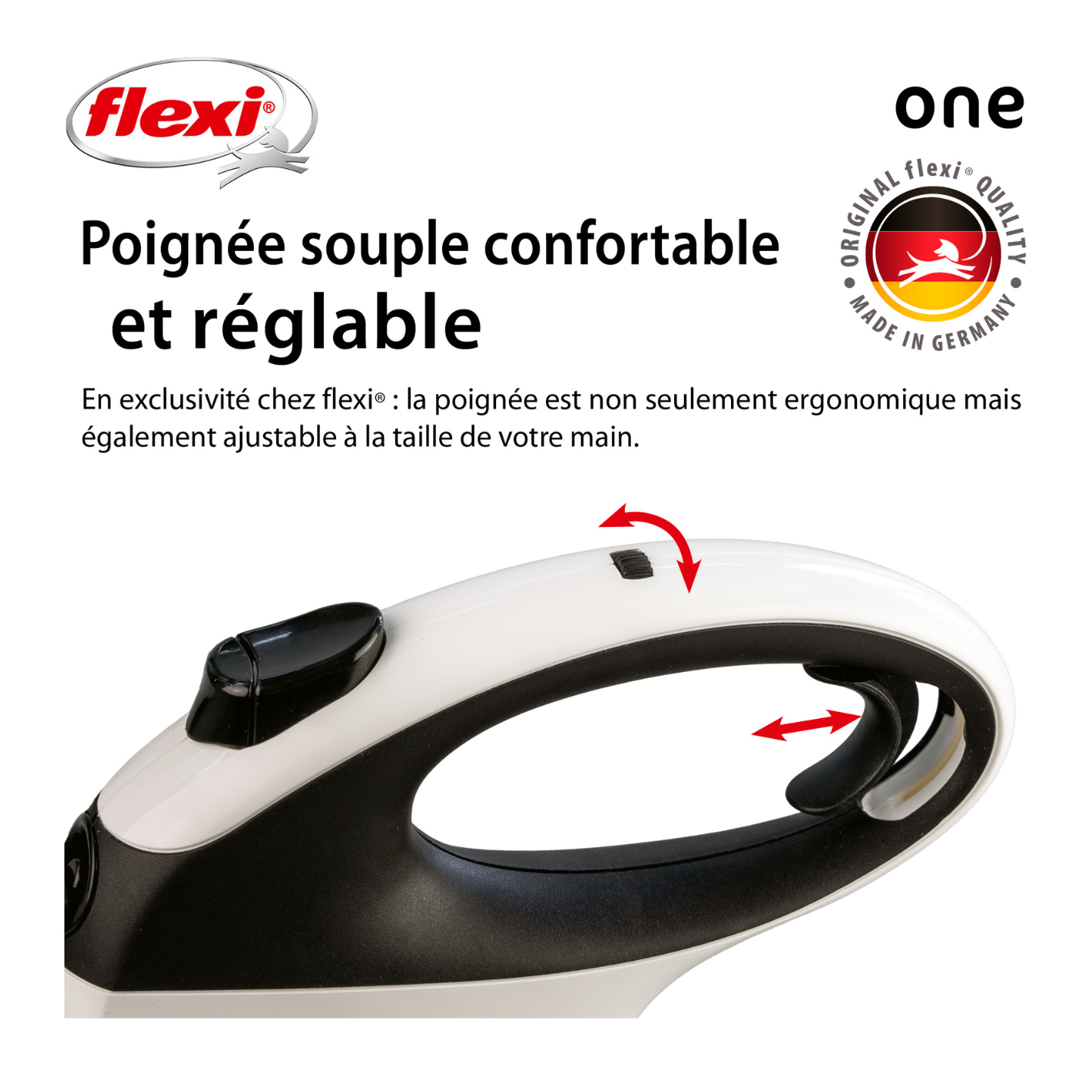 En exclusivité chez flexi®: la poignée est non seulement ergonomique mais aussi ajustable aux conditions d´utilisation. Que vous protégiez vos mains du froid en hiver ou pas en été, la laisse vario elle, vous ira toujours comme un gant.