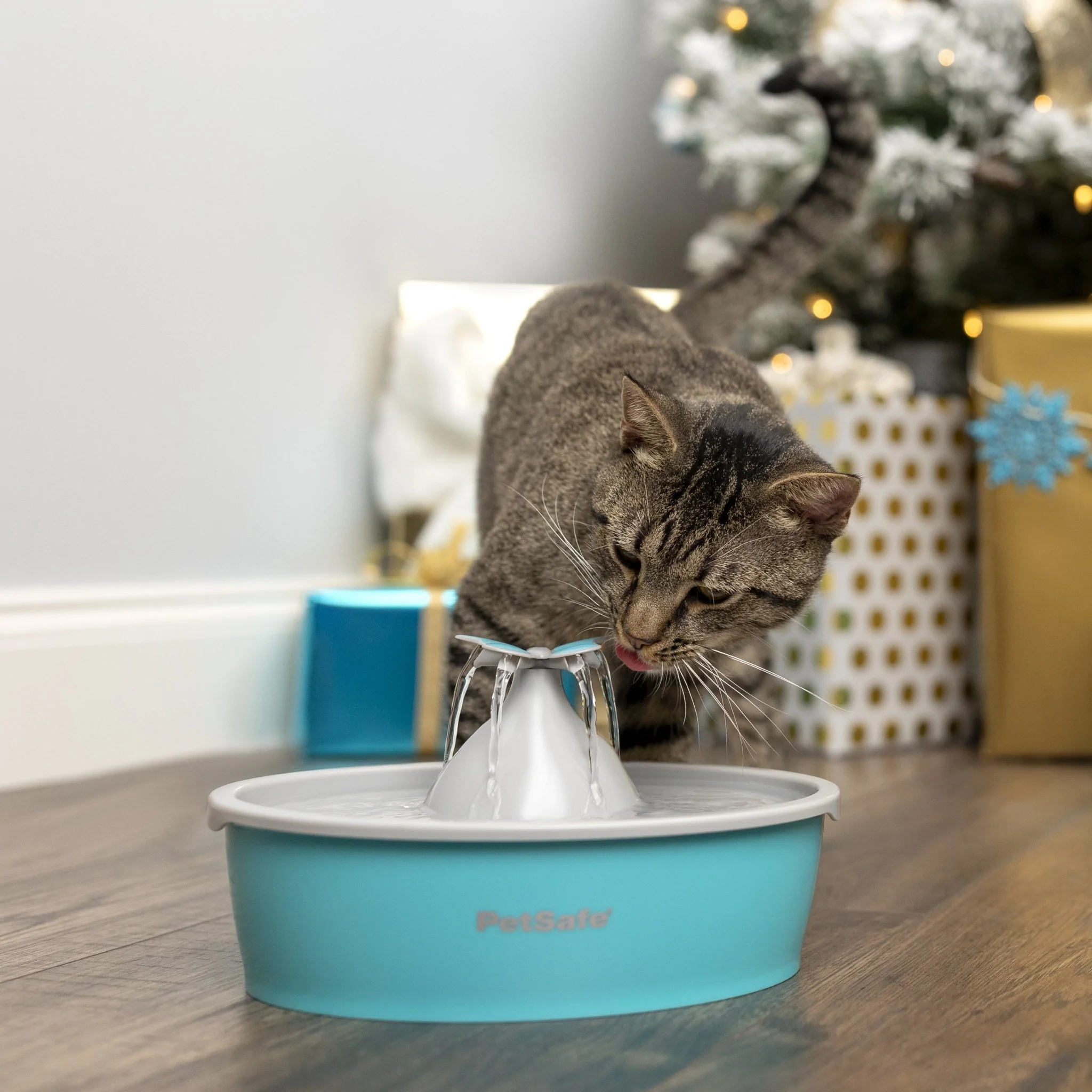 La fontaine à eau Butterfly pour animaux de compagnie Drinkwell de PetSafe filtre et fait circuler l’eau de votre animal en permanence. Le papillon en option sur le dessus, produit quatre flux à écoulement libre et peut se retirer pour créer un flux silencieux et effervescent. La fontaine Butterfly a été spécialement fabriquée sans cavités difficiles d’accès pour le nettoyage, le plastique utilisé est certifié sans Bisphénol A pour garantir la sécurité des animaux. La fontaine est équipée d’une double filtration : le filtre en mousse capture les poils et autres saletés pour une eau plus pure ; le filtre au charbon actif élimine les mauvais goûts et les mauvaises odeurs.