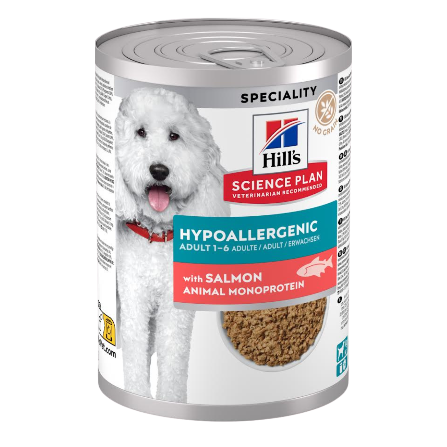Hill’s Science Plan Hypoallergenic au Saumon est une recette sans céréales spécialement formulée pour les chiens sensibles.