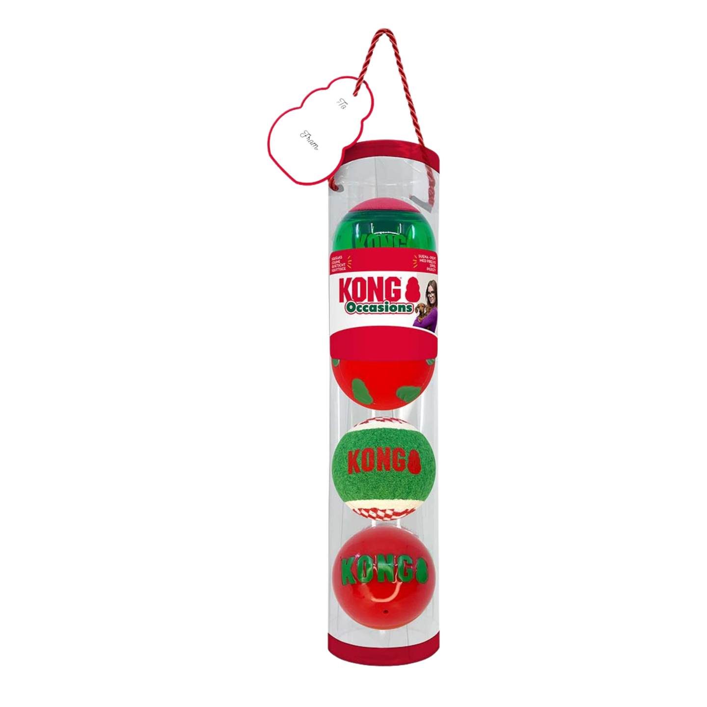 Avec l’ensemble de 4 pièces KONG Holiday Occasions, votre chien reçoit un cadeau varié sous forme de 4 balles résistantes et ultra rebondissantes aux couleurs de Noël festives. Les motifs rouges et verts lumineux apportent une touche de Noël et les rendent faciles à reconnaître dans la neige pour être récupérées.
