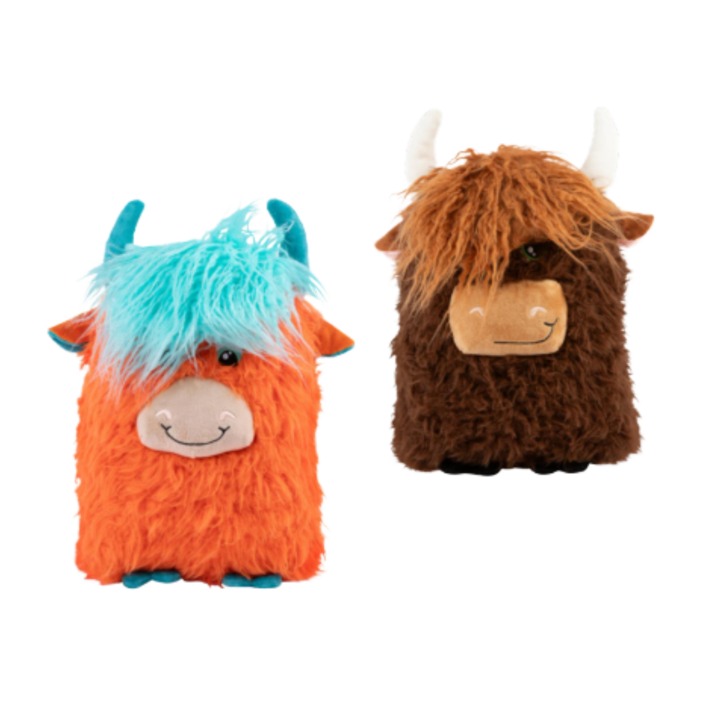 La peluche KONG Comfort Jumbo Highland Cow offre un jeu multisensoriel aux chiens de toutes tailles grâce à son corps moelleux, sa fourrure hirsute et ses poils doux.
