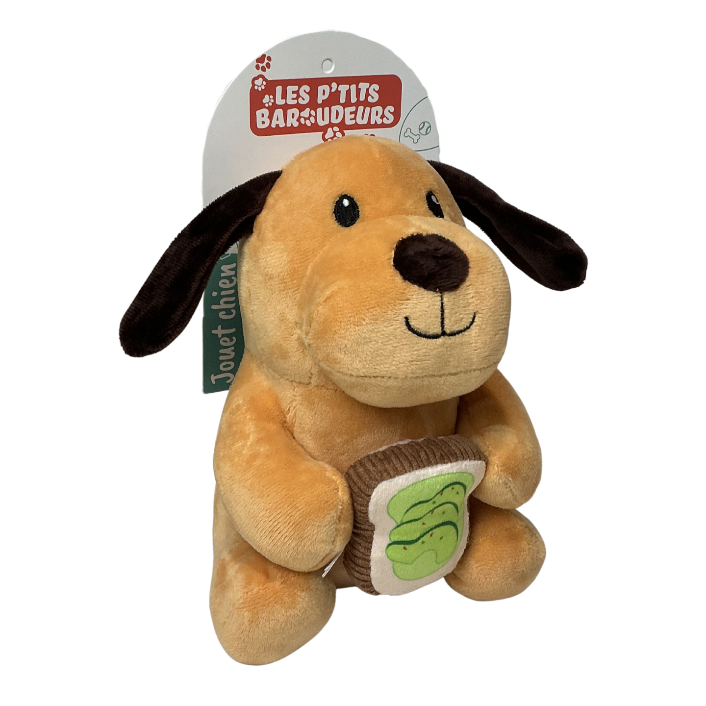 Découvrez la peluche Chien avec toast à l’avocat de notre marque Les P’tits Baroudeurs.