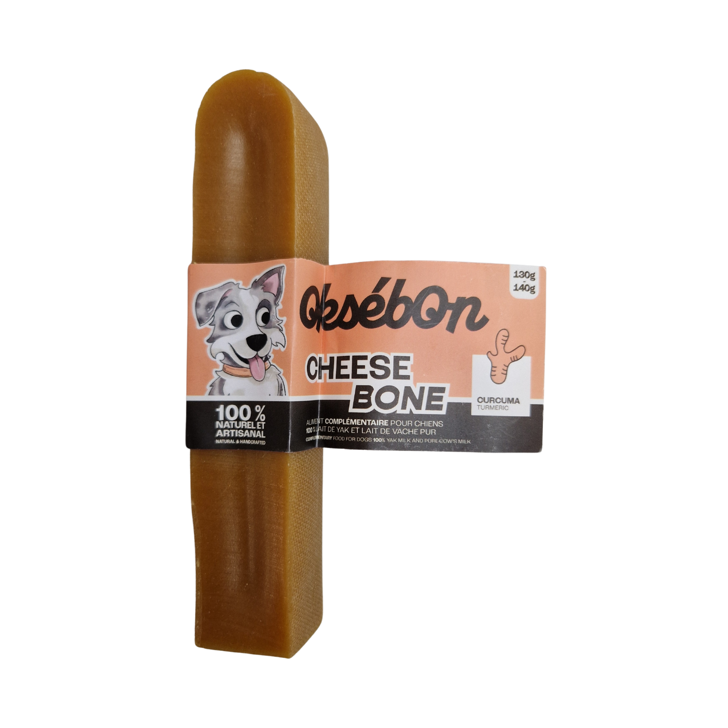 Oksébon Cheese Bone au curcuma est un aliment complémentaire naturel pour Chiens, fabriqué à partir de 100 % de lait de Yak et de lait de Vache pur.