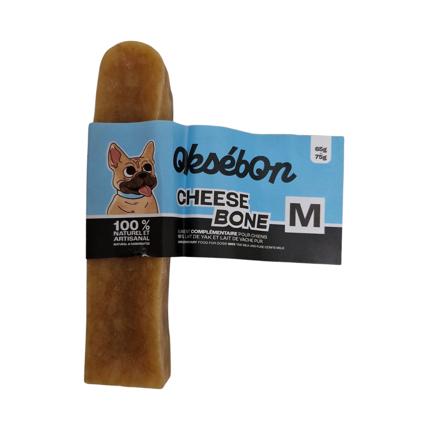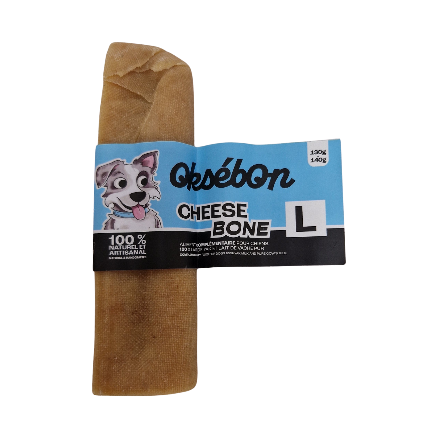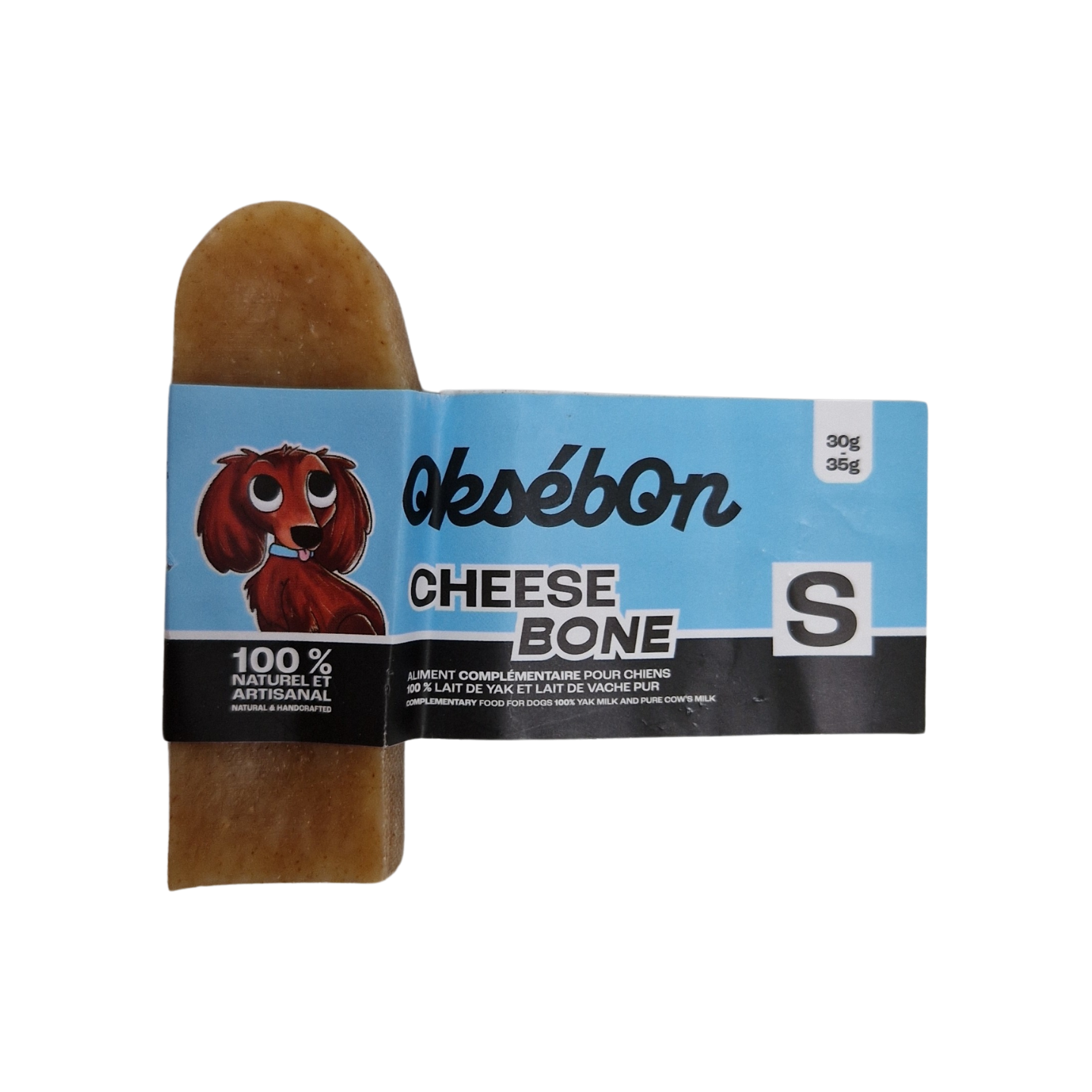 Oksébon Cheese Bone est un aliment complémentaire naturel pour Chiens, fabriqué à partir de 100 % de lait de Yak et de lait de Vache pur.