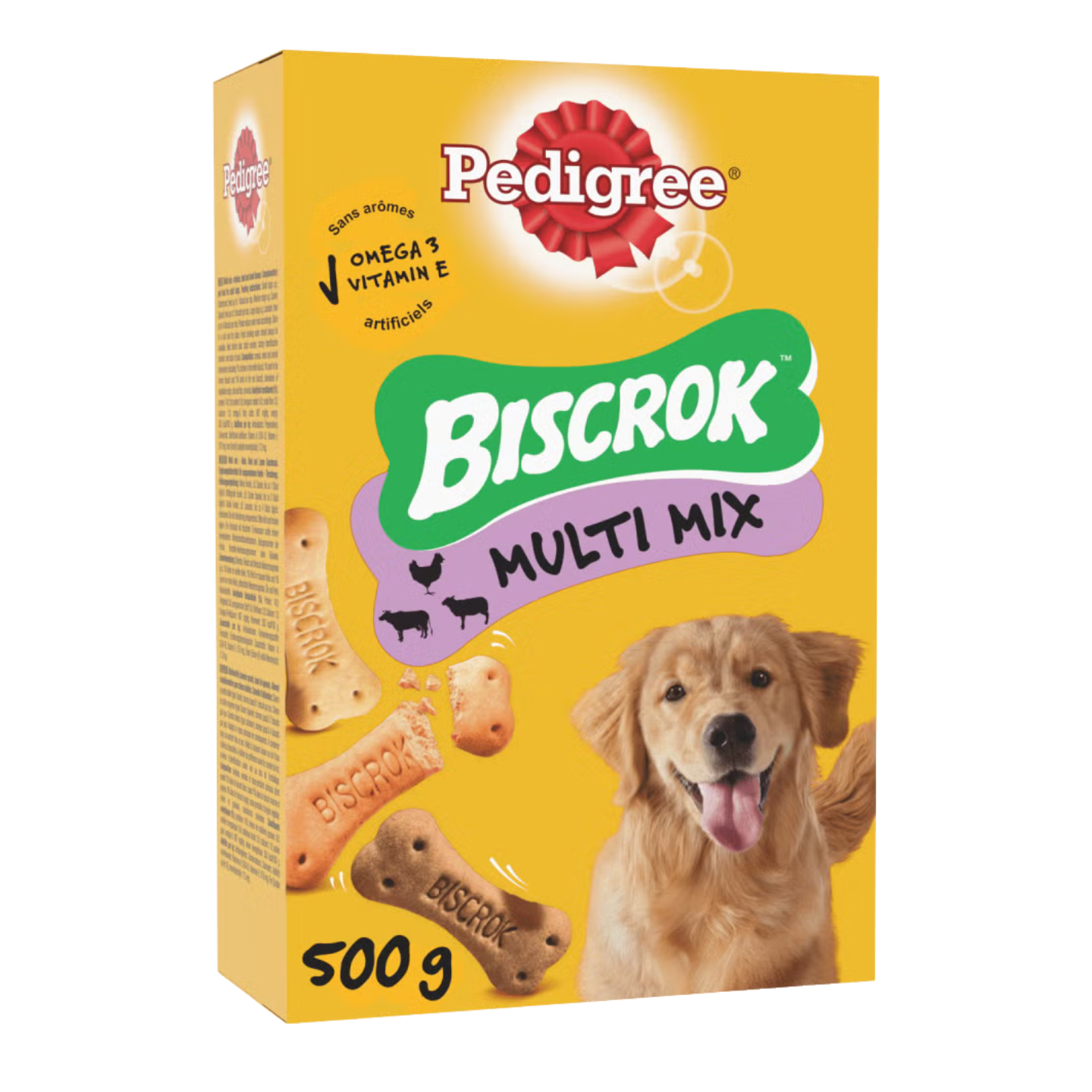 Les produits Pedigree Biscrock contiennent des Oméga 3 pour l’aider à rester en forme tout au long de sa vie. Du calcium pour l’aider à garder des dents et des os solides Des vitamines et des minéraux pour l’aider à préserver ses défenses naturelles Sans arômes ni colorant artificiels.