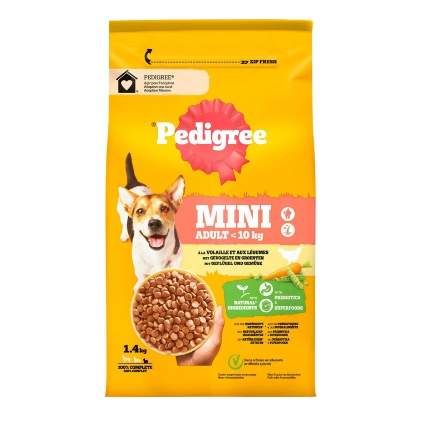 Les croquettes Pedigree Adult Mini sont spécialement conçues pour les chiens adultes pesant jusqu’à 10 kilos.