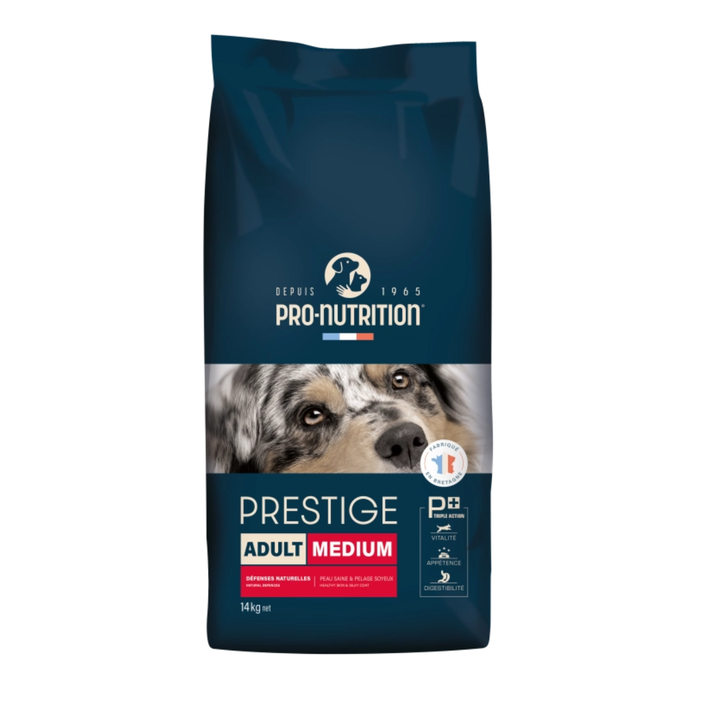 Formulées pour les chiens adultes en pleine forme, les croquettes Prestige ADULT offrent une alimentation complète, savoureuse et équilibrée.