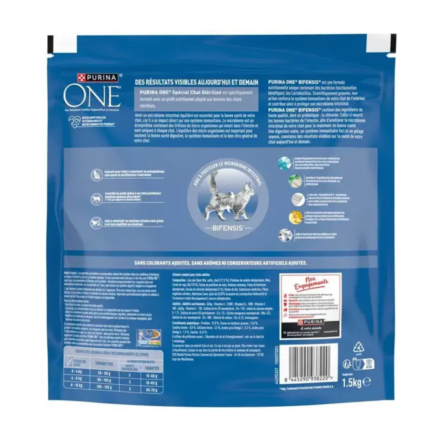 Les vétérinaires et les nutritionnistes de PURINA® ont développé l’aliment pour chats PURINA® ONE® BIFENSIS® SPÉCIAL CHAT STÉRILISÉ* spécialement conçue avec des taux de protéine et de matières grasses adaptés pour aider à maintenir le métabolisme de votre chat stérilisé en bonne santé.