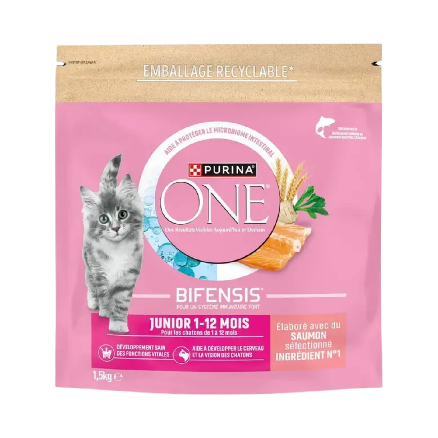 PURINA® ONE® BIFENSIS® JUNIOR est spécialement formulé pour répondre aux besoins nutritionnels des chatons (du sevrage jusqu’à 12 mois) et pour les chattes en gestation ou en lactation.