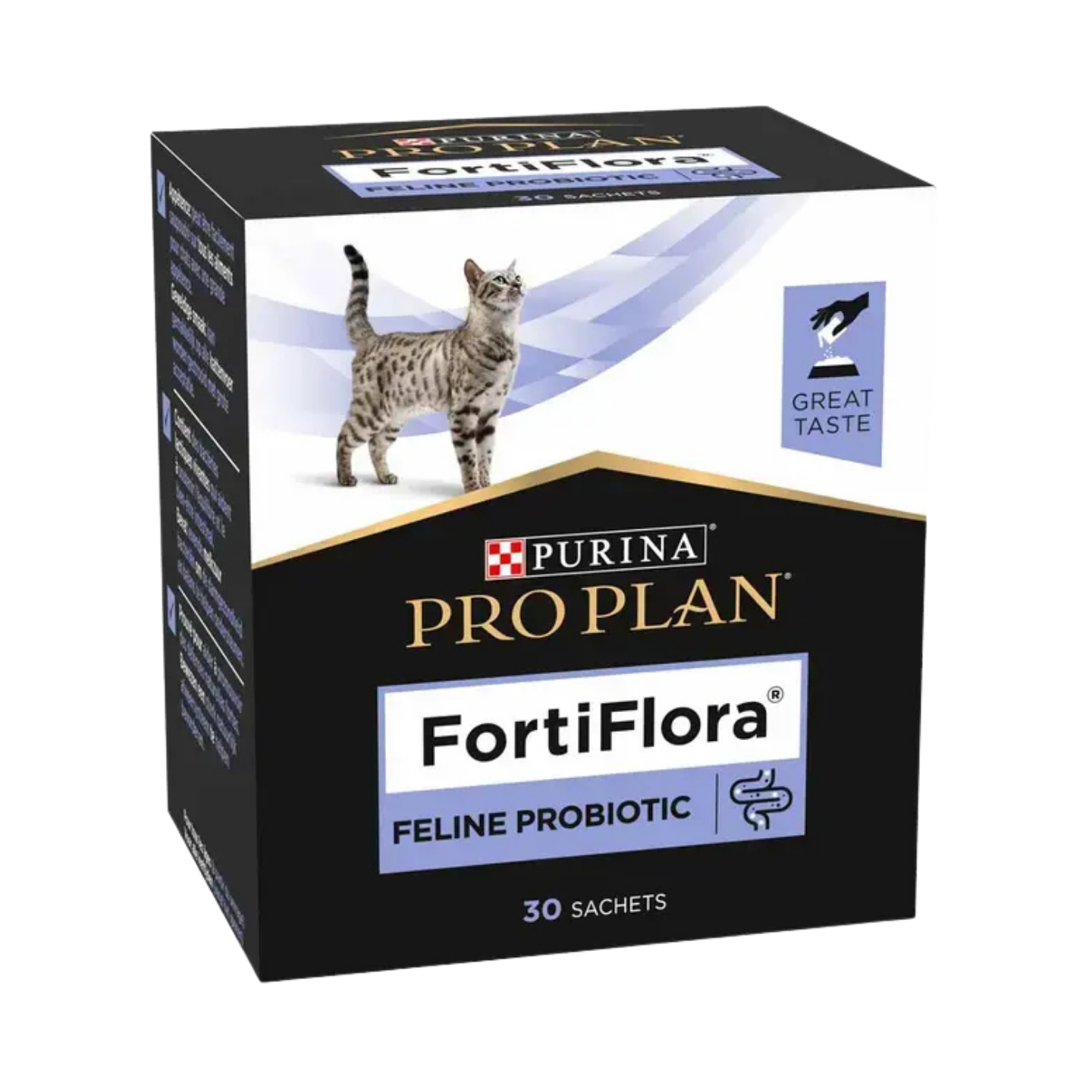 De la même manière que les humains, les animaux profitent des effets des probiotiques, comme la souche SF68®, uniquement durant le temps du traitement. Dans les cas de troubles digestifs, bien que vous puissiez voir une amélioration grâce à FortiFlora® au bout de quelques jours, il est recommandé de poursuivre le traitement de votre animal pendant au moins 30 jours afin de stabiliser correctement sa flore intestinale. FortiFlora® est adapté aux chats de tout âge, y compris les chatons, les animaux âgés ainsi que les femelles en Gestation et allaitantes.