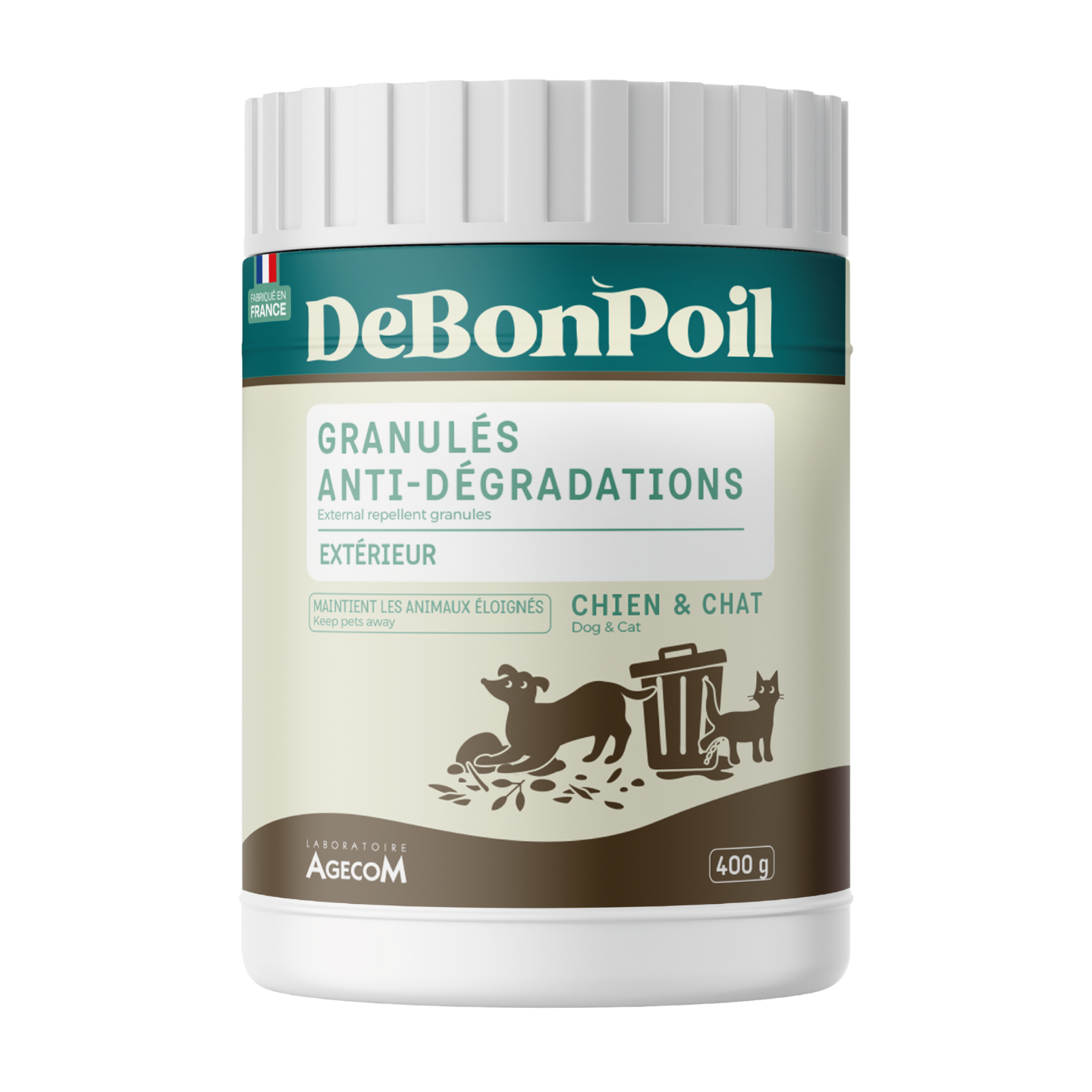 Véritable soutien à l’éducation de l’animal, les granulés Stop Chien et Chat vous permettent de maintenir éloignés, efficacement et facilement, les animaux des zones à protéger (portes, poubelles, parterres et jardins…). Son fort pouvoir répulsif agit sur l’animal pendant 4 semaines dans les conditions normales d’utilisation.
