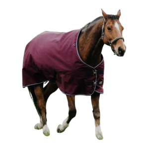 Elle possède une boucle en métal nickelé pour fermer au poitrail et une courroie de queue afin de la maintenir en place.