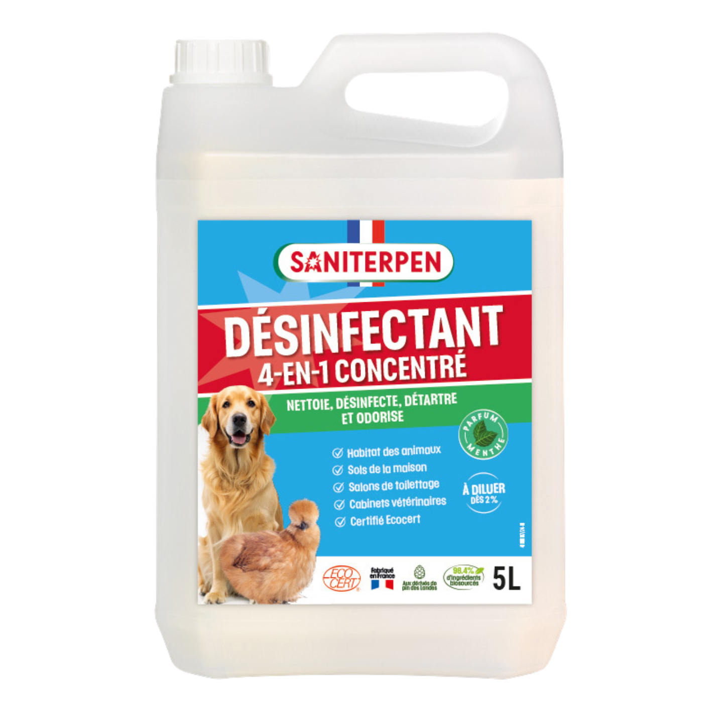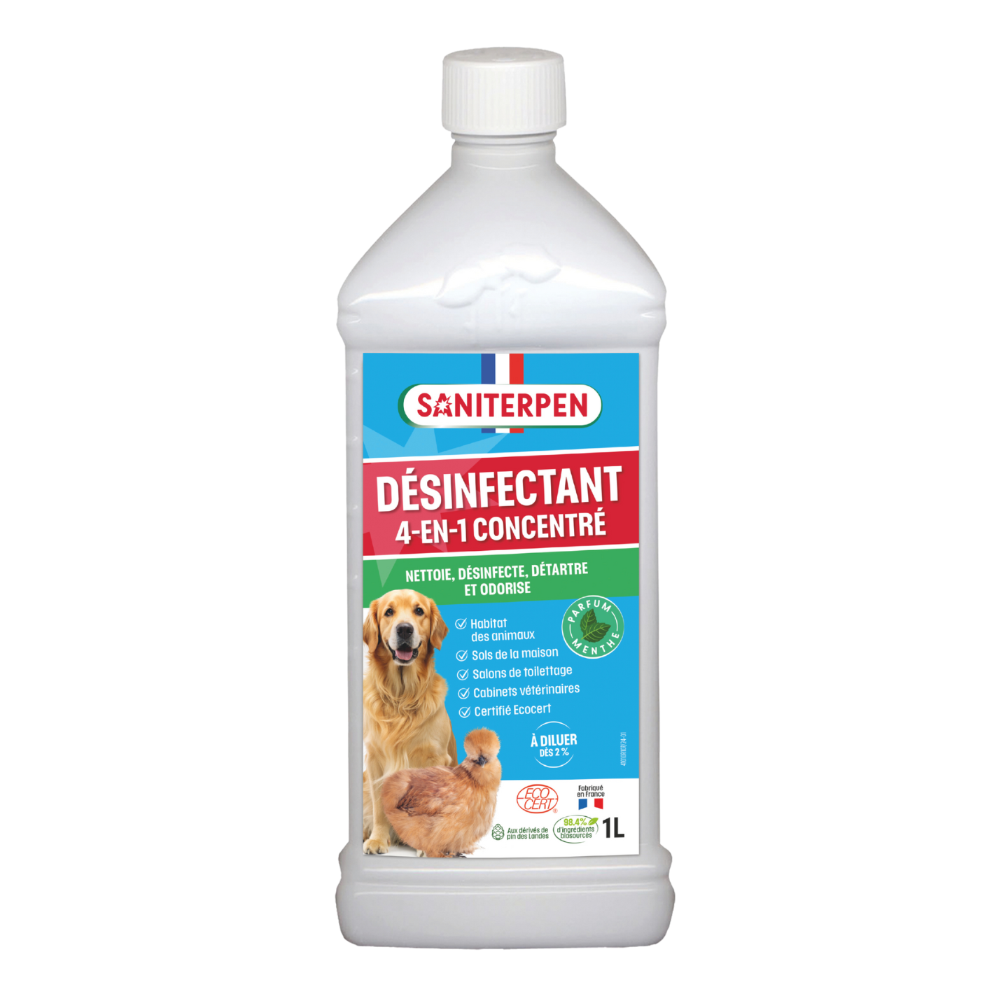 Saniterpen Viractif Concentré est un produit nettoyant, dégraissant, détartrant, désinfectant et odorisant. Produit certifié selon le référentiel « Ecodetergent » disponible sur www.ecocert.com, il élimine bactéries, champignons, levures et virus souvent responsables de nombreuses maladies.