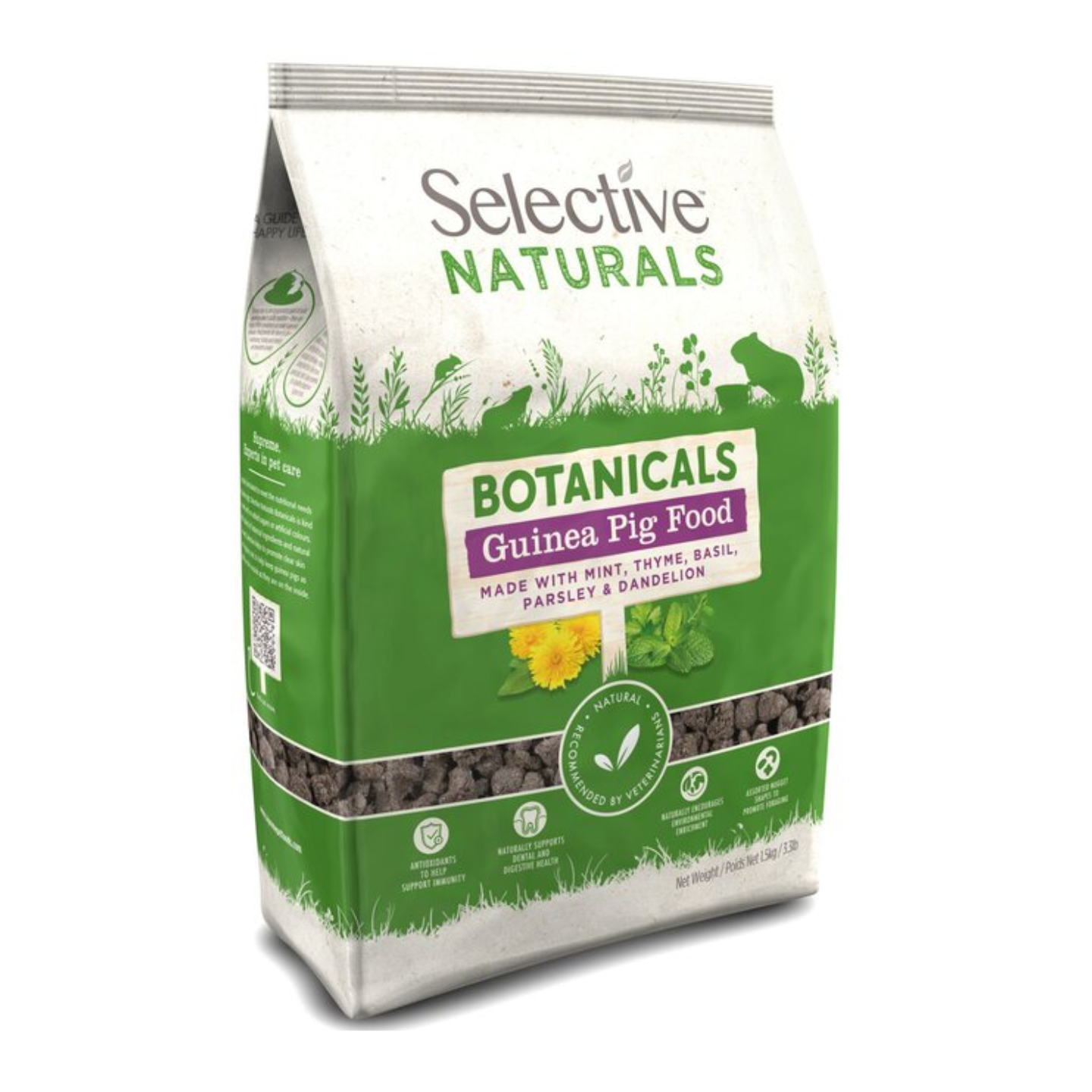 Un cochon d’Inde adulte de taille moyenne aura besoin de 40 à 50g par jour de granulés Selective Guinea Pig Botanicals.