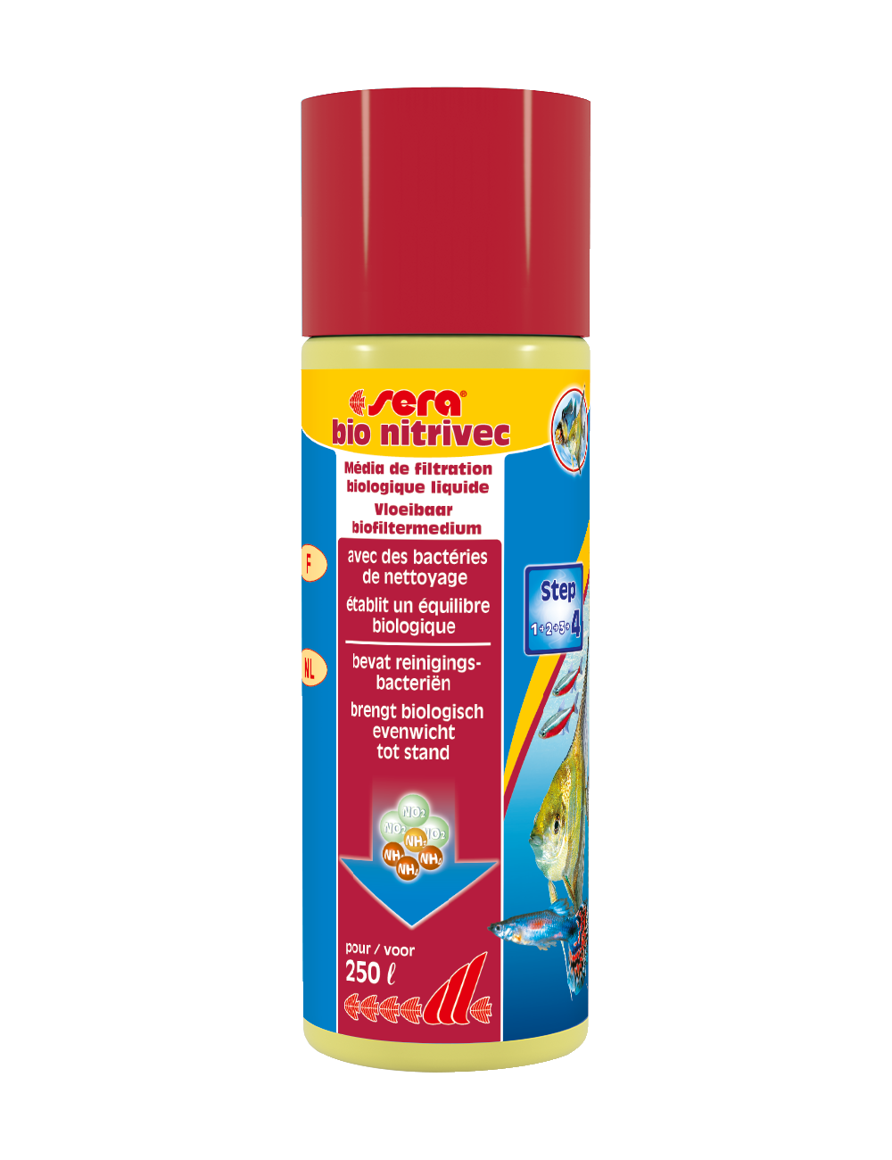 sera pond bio nitrivec, un produit issu de la biotechnologie sera, décompose l’ammonium et les nitrites de façon efficace, rapide et naturelle, grâce aux bactéries de nettoyage qu’il contient.
