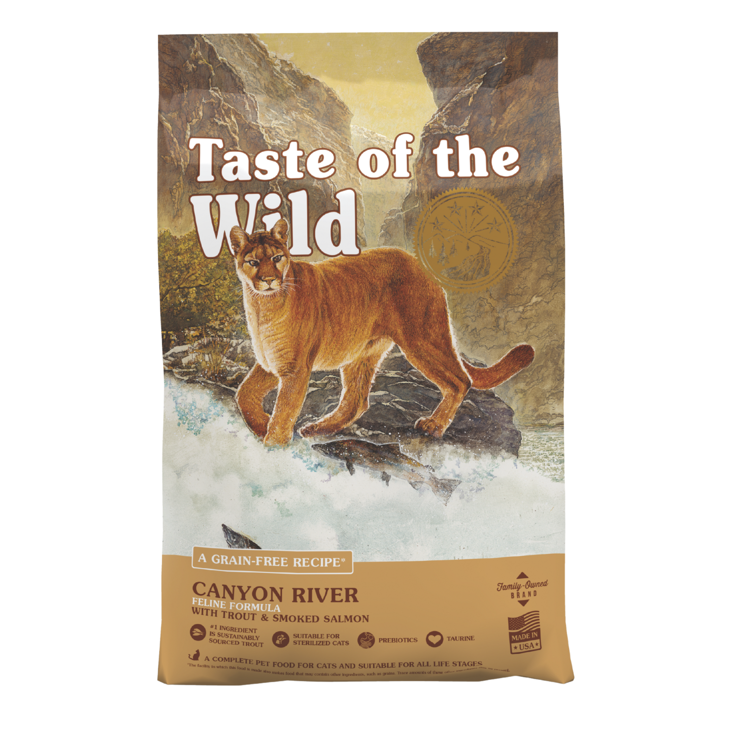 Loup, renard, puma, chat sauvage… Les ancêtres de nos chiens et chats domestiqués sont bâtis pour survivre dans la nature. Bien que nos animaux de compagnie ne vivent plus à l’état sauvage, la science contemporaine affirme qu’ils partagent encore de l’ADN avec leurs semblables. C’est de ce constat qu’est né Taste of the Wild : une alimentation premium et complète, conçue à partir de sources de protéines issues du régime alimentaire originel de votre animal. Entretenez sa vitalité naturelle et répondez à ses instincts de carnivore en lui offrant une alimentation délicieuse et équilibrée, inspirée par la Nature.