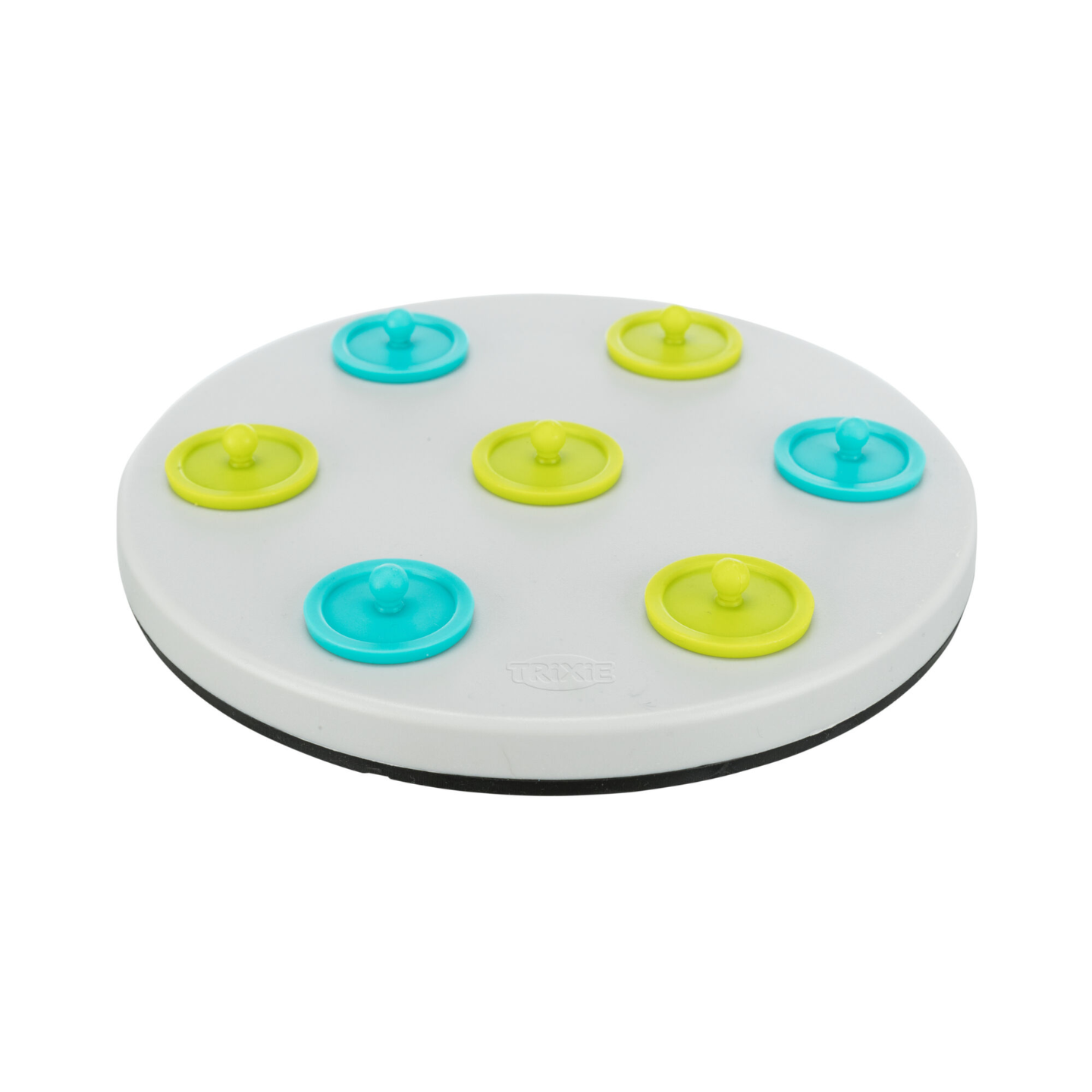 Plateau avec 7 couvercles : le lapin doit soulever les couvercles pour obtenir les friandises.