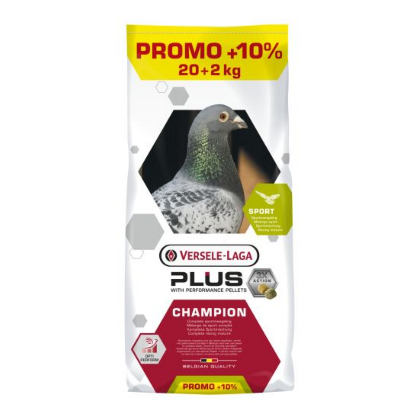 Les granulés Plus contiennent de la lécithine et de la L-carnitine pour une absorption et une combustion optimales des graisses chez les pigeons.