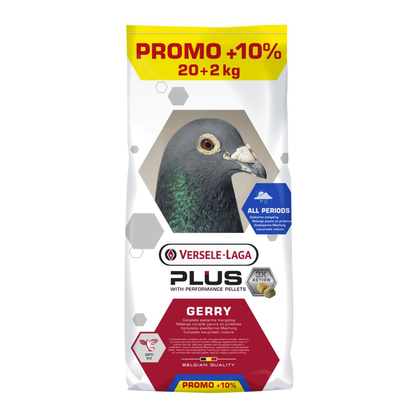 Le granulé Plus contient des vitamines, des antioxydants, des acides aminés et des minéraux supplémentaires pour maintenir les pigeons en bonne santé. De plus, le mélange Plus contient de l’acide butyrique estérifié, qui favorise la digestion. Le granulé Plus contient de la poudre d’algues, de la vitamine D3, de la glucosamine, de la vitamine C et de la chondroïtine. Ensemble, ils soutiennent les articulations (des ailes), qui jouent un rôle important dans les performances des pigeons voyageurs.